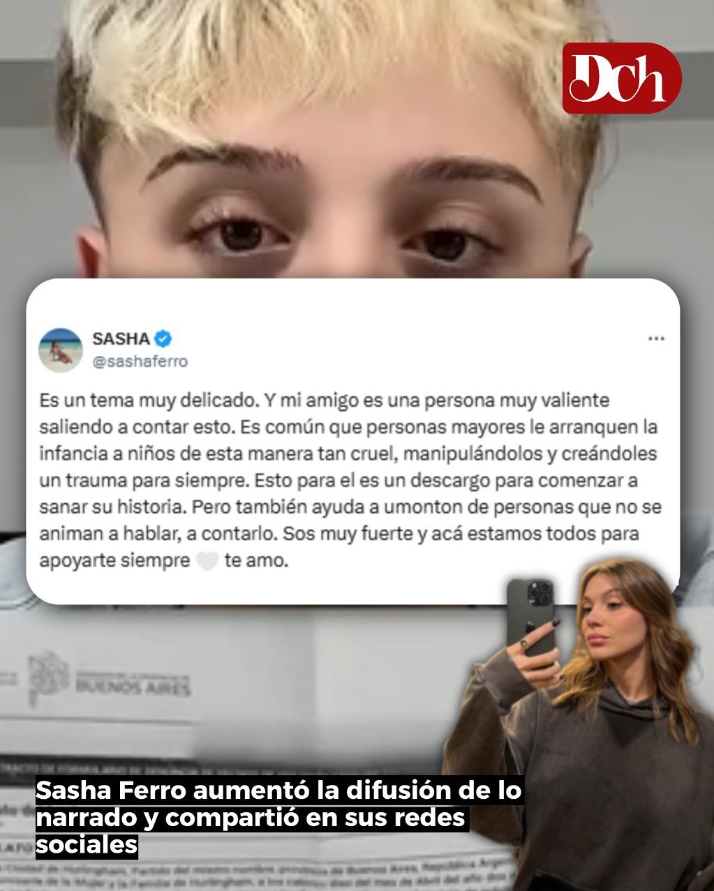 Su amiga, la modelo y streamer Sasha Ferro, amplific贸 el caso en sus redes, apoyando a Guarino.