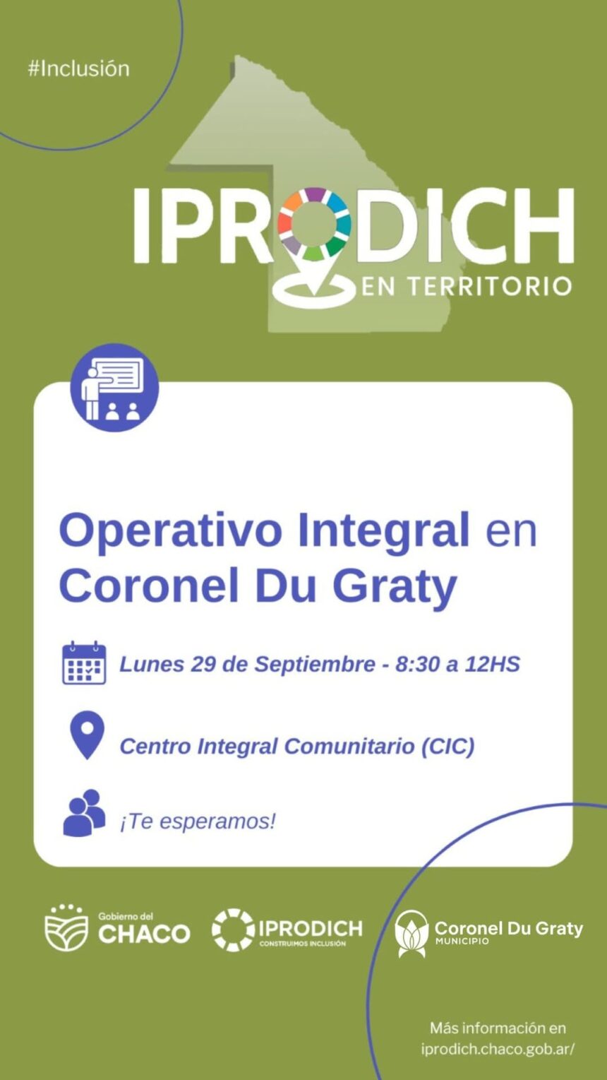 👉El lunes 29 de septiembre, de 08:00 a 12:30hs, en el CIC, se llevará a cabo un operativo del IPRODICH