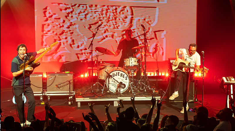 Las sorpresas continuaron. En “Cardio” y “Caladas” irrumpió Diositode La élitepara uno de los momentos más desquiciados de la noche: saltó al público, viaje en volandas y un estallido eléctrico que convirtió la sala en un caos. Después llegó “Aquellos ojos”, probablemente la pieza más histórica de Mujeres, clave en el proceso de transformación que desembocó en Un Sentimiento Importante. Curiosamente, apareció tres años antes del disco en un EP homónimo y mantiene intacta su fuerza: directo a la memoria, directo a la piel.