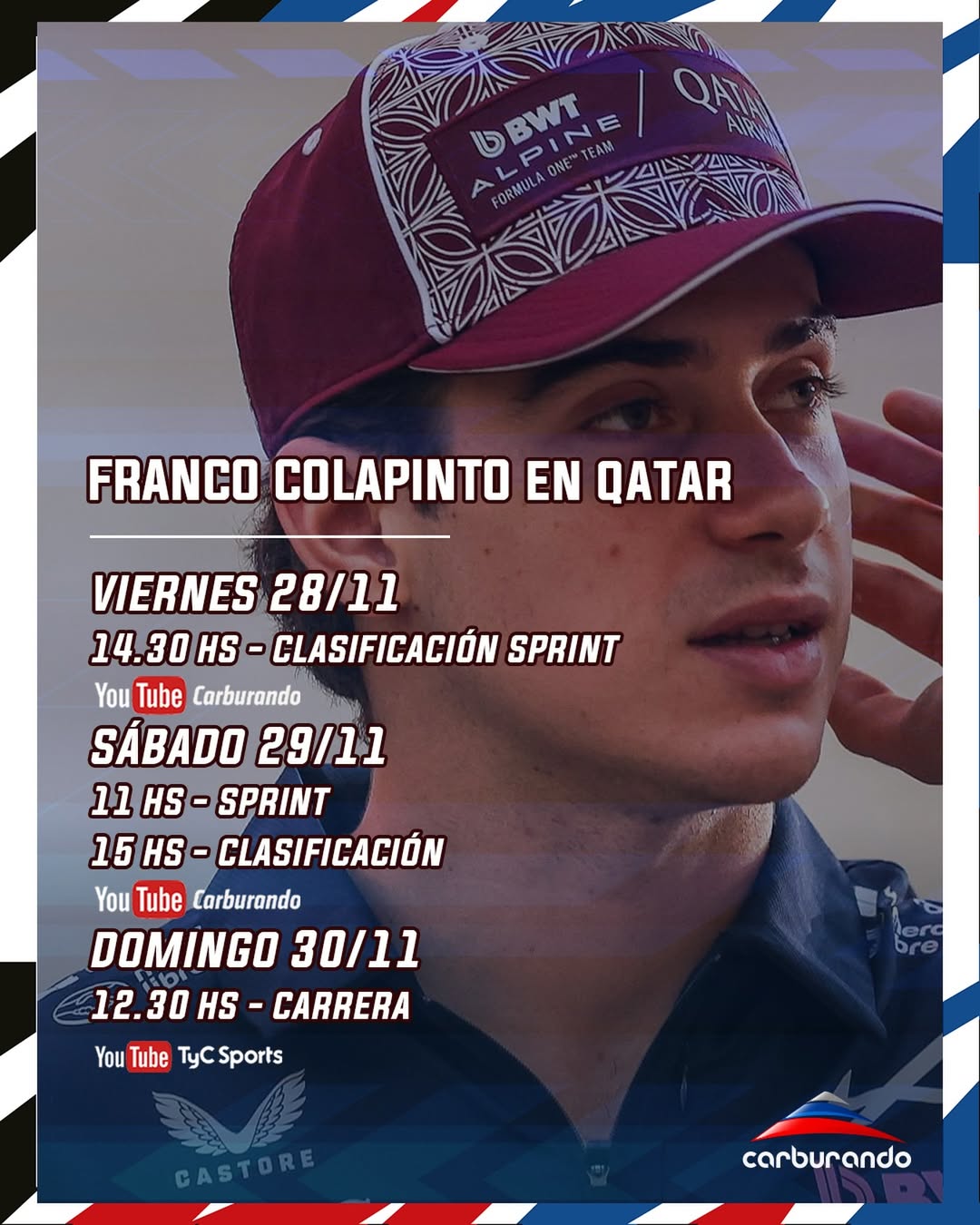 ¡Seguí toda la actividad de Franco Colapinto en Qatar junto a Carburando! 🇦🇷