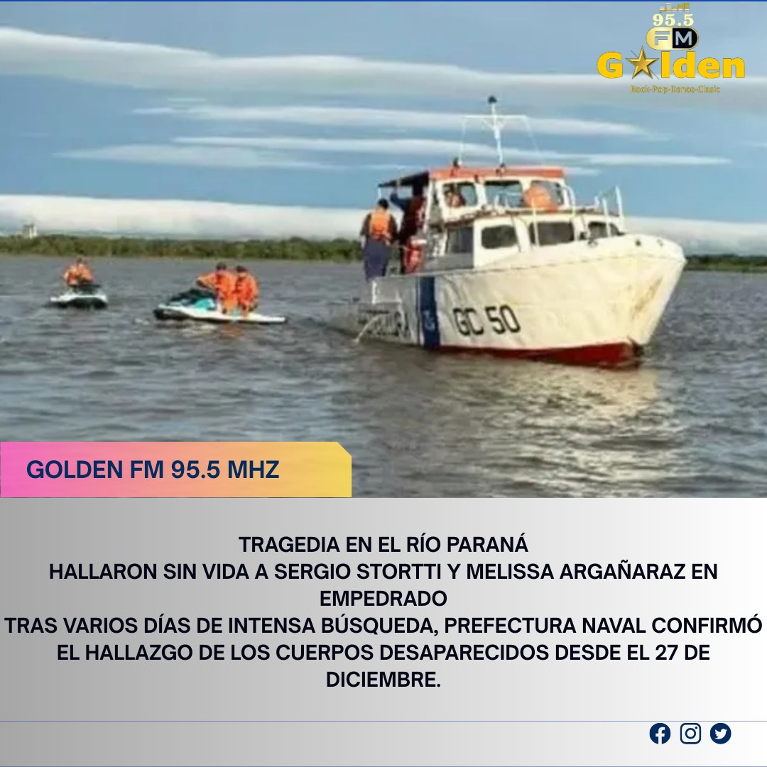 La búsqueda que mantenía en vilo a la comunidad de Empedrado tuvo un desenlace doloroso. En la tarde del lunes, personal de Prefectura Naval Argentina localizó sin vida a Sergio Ramón Stortti y Melissa Argañaraz, quienes habían desaparecido tras el siniestro ocurrido en la zona del banco de arena del río Paraná.