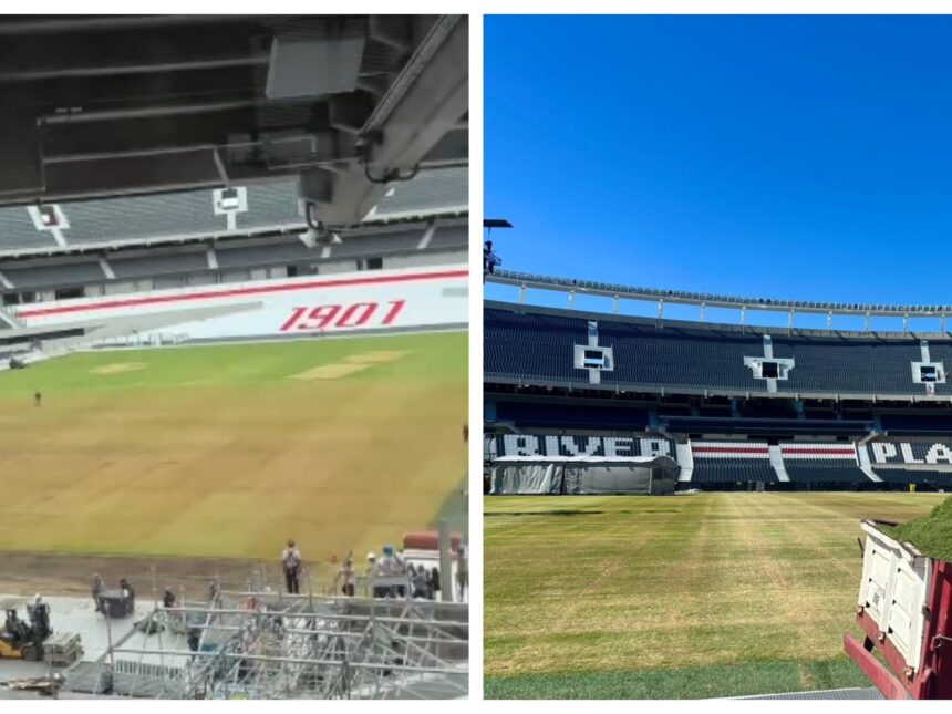 Luego de levantar la placas protectoras, cuya finalidad es amortiguar el tránsito y los saltos de los presentes y reducir lo máximo posible el deterioro del pasto, las tareas de mantenimiento continúan a paso firme en una superficie que, por estas horas, no luce ese verde intenso que acostumbra verse. Sin embargo, desde Núñez aseguran que se trata únicamente de una cuestión de aspecto producto de las últimas lluvias que cayeron sobre la Ciudad y que el campo evoluciona bien y se encuentra nivelado, lo que permitirá un normal desarrollo del juego.