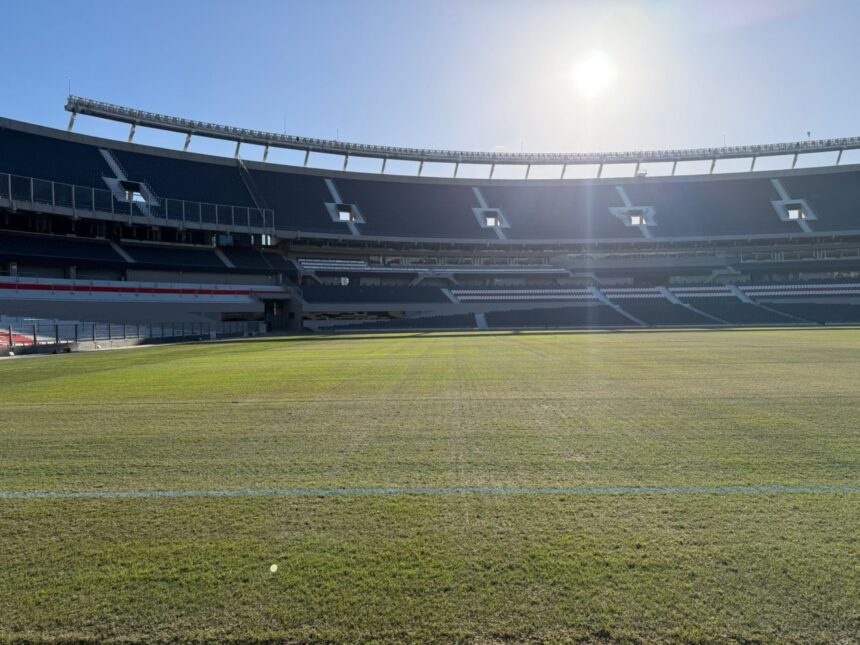 Cuando Río y Belgrano salgan a jugar en el Monumental lo harán en un campo de juego que se encuentra atravesando una transición para su puesta a punto. Luego de los tres recitales de AC/DC y de un proceso de resembrado que se realizó en simultáneo para adelantar procesos, el club logró que las condiciones del terreno mejoraran en relación a las imágenes que se viralizaron luego de los shows.