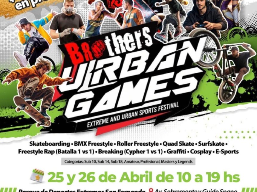 Hay eventos donde tenés que elegir qué ver. Pero ahora se viene uno que no es necesario… Porque todo está pasando al mismo tiempo. De un lado hay una competencia. Más allá, una batalla de freestyle. Un grupo baila en ronda. Un artista pinta en vivo. Y, además, alguien compite en videojuegos. Y mientras caminás, todo sigue ahí, en pocos metros. Eso es lo que hace distinto a los Brothers Urban Games 2026 que se llevarán a cabo este sábado 25 y domingo 26, de 10 a 19 horas, en el Parque de Deportes Extremos en San Fernando (avenida Sobremonte y Spano), con una propuesta que combinará alto rendimiento, cultura urbana y comunidad.