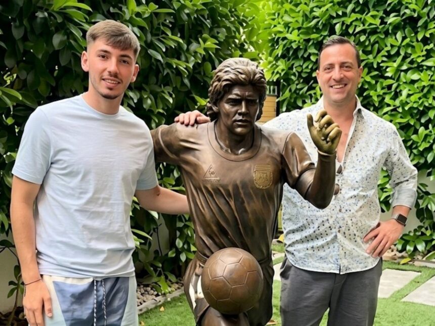 Se trata de Billy Gilmourvolante escocés del Napoli que en las últimas horas mostró la escultura que mandó a construir para su hogar. Allí se observa el proceso de creación y resultado final de la estatua que es en tamaño real y replica la icónica imagen de Maradona en la final de México 1986, cuando el astro se lleva la pelota controlándola con su muslo derecho.