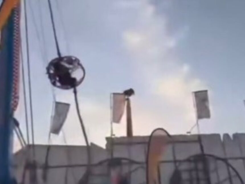 😲 Se rompe un cable en la atracción ‘Superman’ de la Calle del Infierno en la Feria de Sevilla👮♂️ Policía Nacional y Protección Civil ayudan a bajar la plataforma esférica donde estaban los usuarios pic.twitter.com/vu9pu53BaH