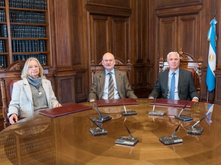 El presidente de la Suprema Corte, Sergio Gabriel Torres, el vicepresidente, Daniel Fernando Soria, y la ministra Hilda Kogan, encabezaron un acto institucional en la sala audiencias del máximo tribunal, acompañados por el Procurador General, Julio Conte-Grand.