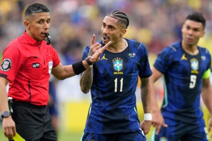 El delantero brasileño Raphinha tuvo que salir por una molestia en el…